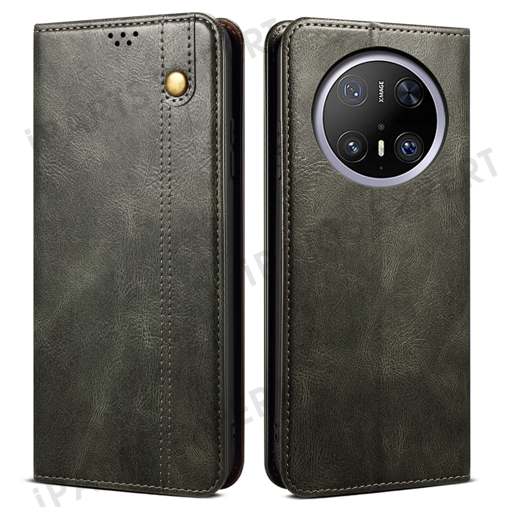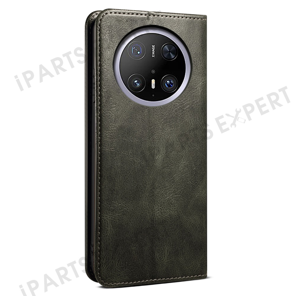 For Huawei Mate 70 Case Crazy Horse Texture Waxy Leather Wallet Stand Phone Cover - Green