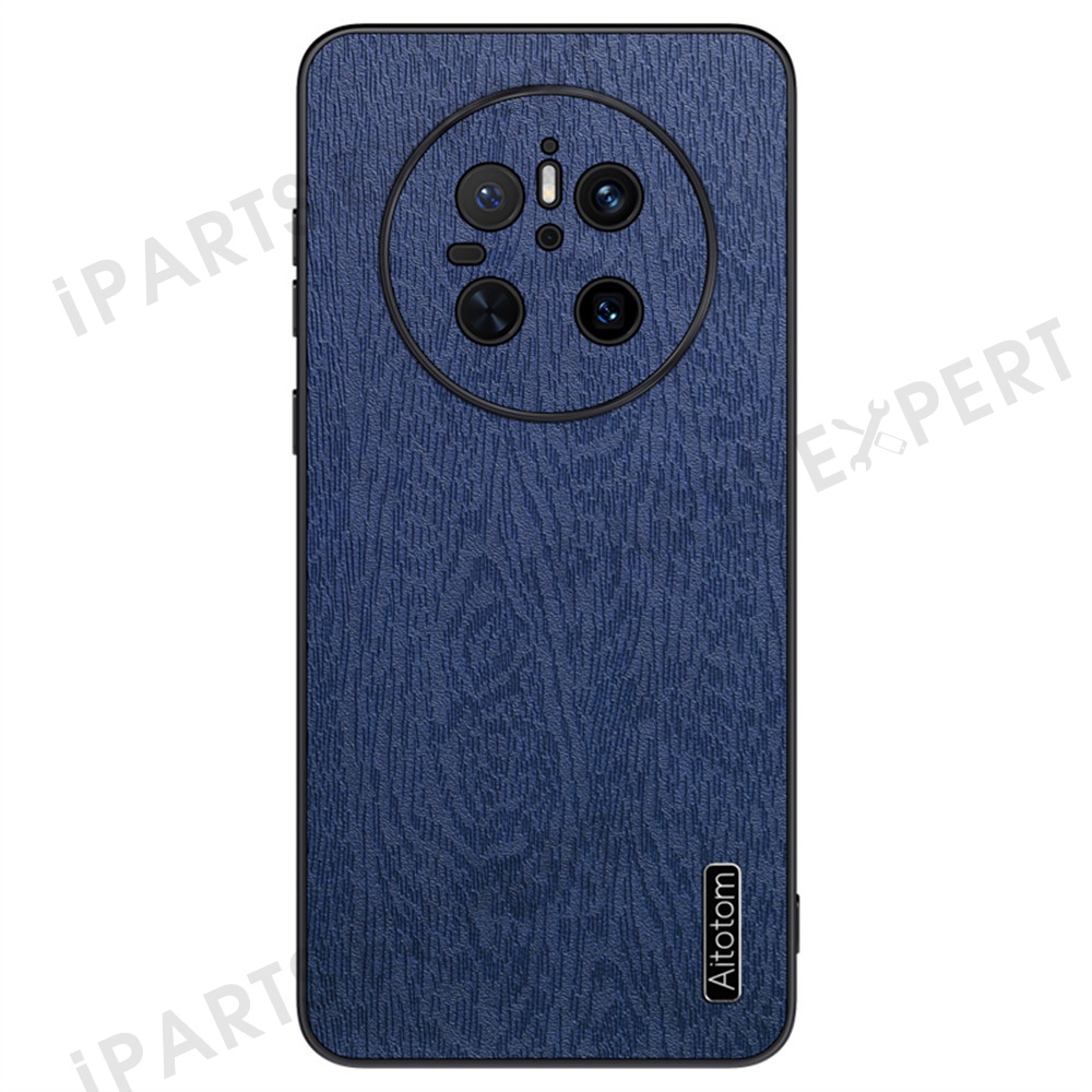 For Huawei Mate 70 Case Wood Texture PU Leather Coated PC TPU Phone Cover - Blue