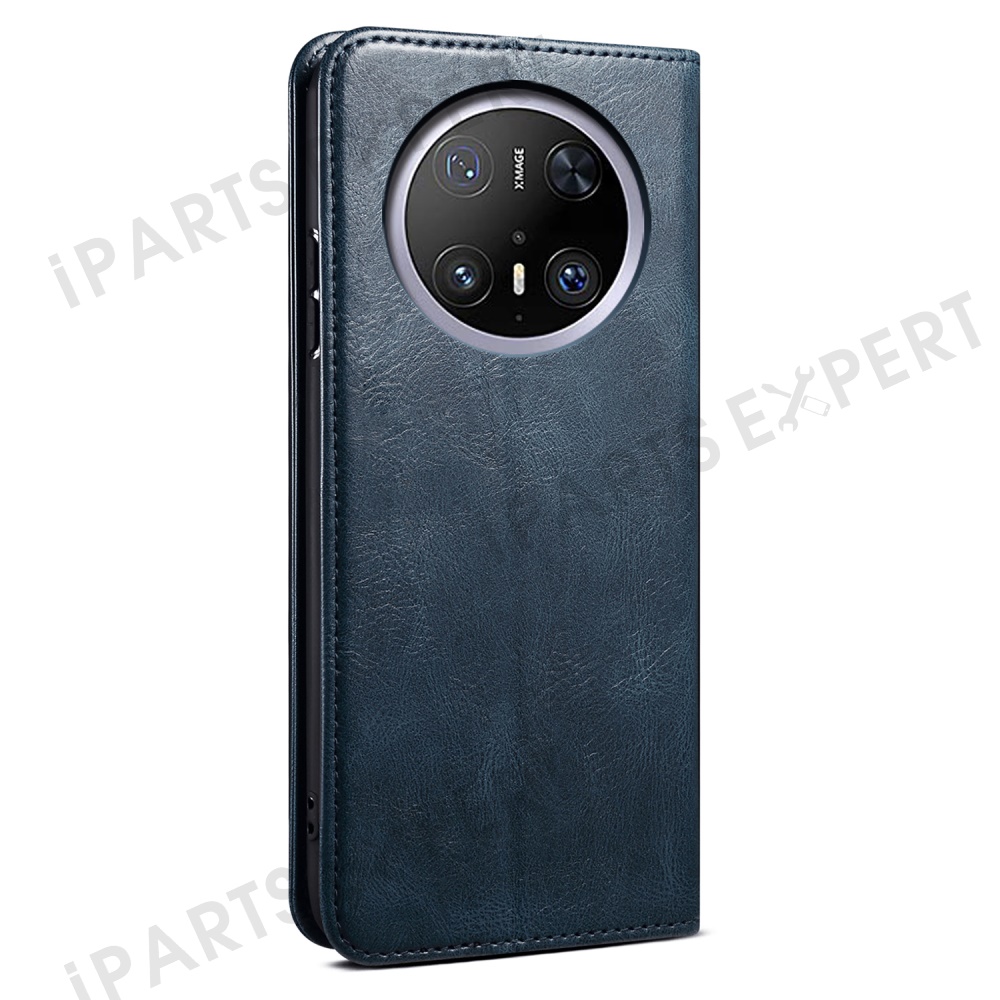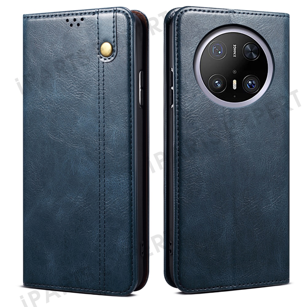 For Huawei Mate 70 Pro / Mate 70 Pro+ Case Crazy Horse Texture Waxy Leather Wallet Stand Phone Cover - Blue