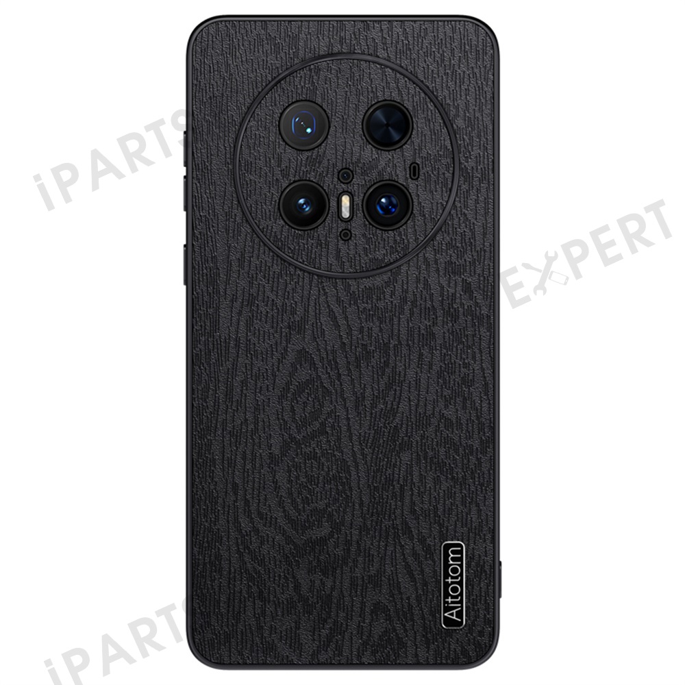 For Huawei Mate 70 Pro+ / Mate 70 Pro Case Wood Texture PU Leather Coated PC TPU Phone Cover - Black