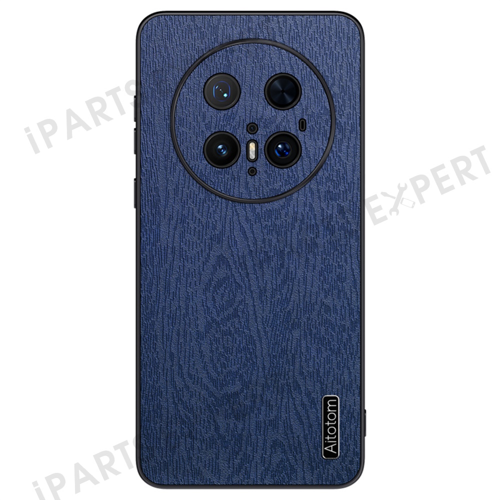 For Huawei Mate 70 Pro+ / Mate 70 Pro Case Wood Texture PU Leather Coated PC TPU Phone Cover - Blue