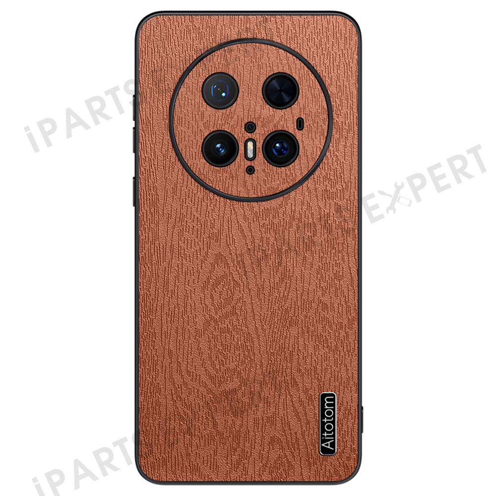 For Huawei Mate 70 Pro+ / Mate 70 Pro Case Wood Texture PU Leather Coated PC TPU Phone Cover - Brown