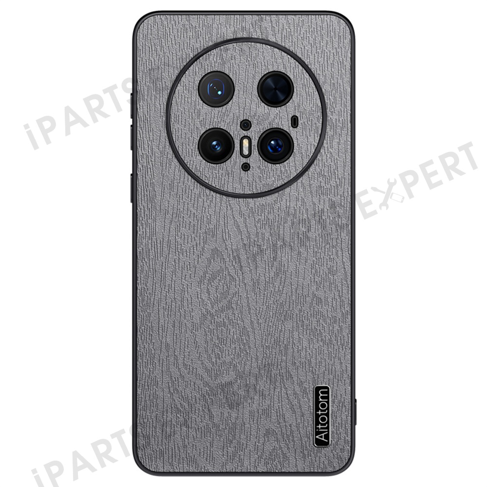 For Huawei Mate 70 Pro+ / Mate 70 Pro Case Wood Texture PU Leather Coated PC TPU Phone Cover - Grey