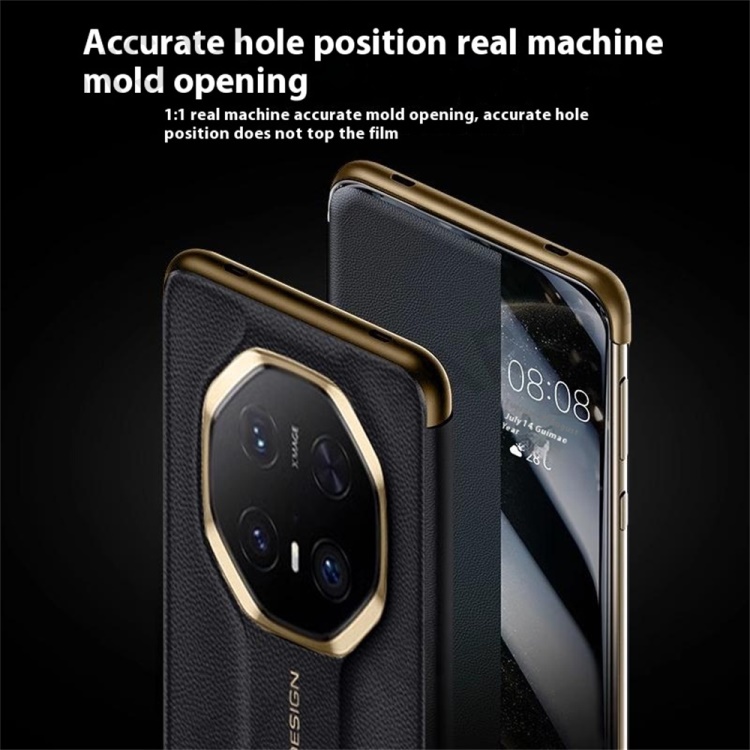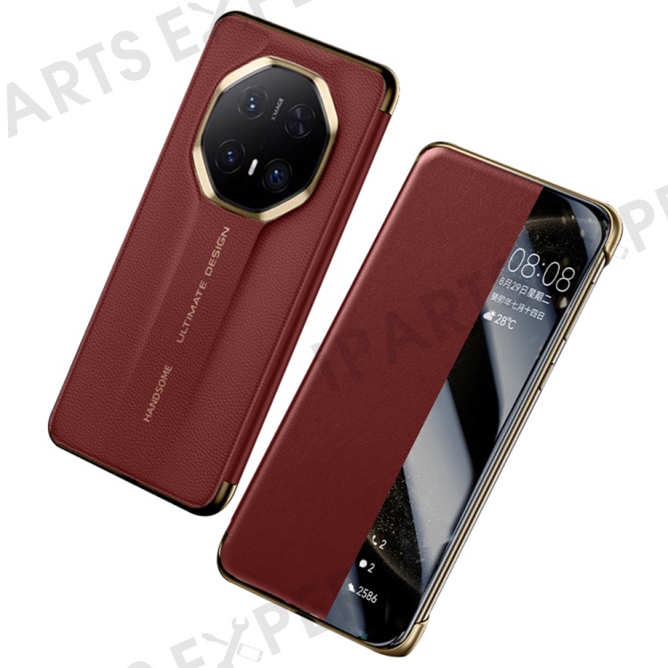 For Huawei Mate 70 RS Ultimate Case Genuine Cow Leather View Window Smart Phone Cover - Red
