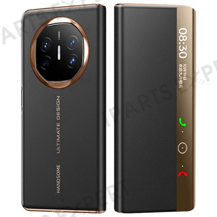 For Huawei Mate X6 Case View Window Auto Wake / Sleep Leather Flip Phone Cover Litchi Texture - Black / Gold