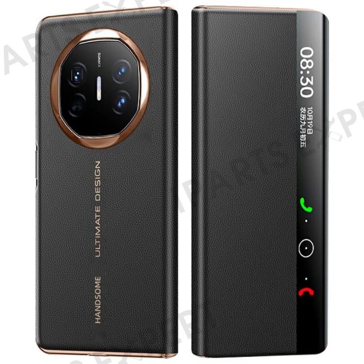 For Huawei Mate X6 Case View Window Auto Wake / Sleep Leather Flip Phone Cover Litchi Texture - Black