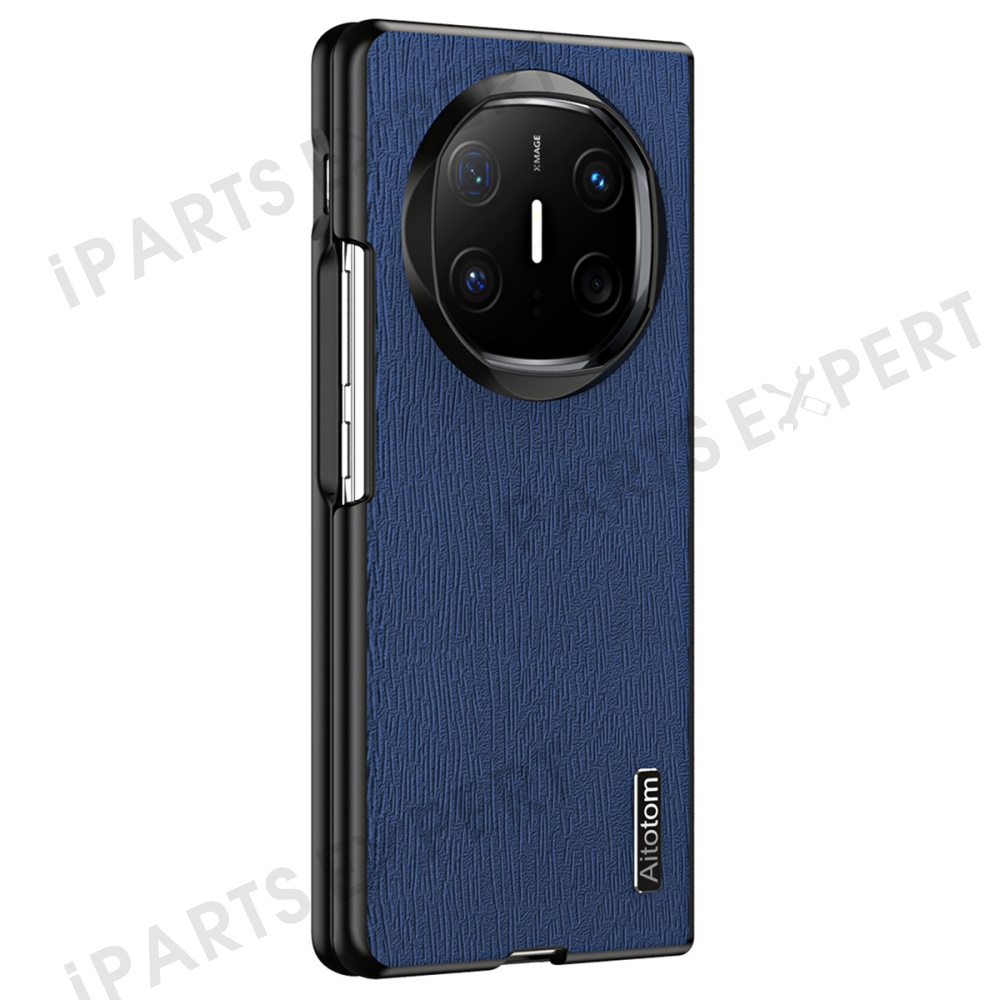 For Huawei Mate X6 Case Wood Texture PU Leather Coated PC TPU Phone Cover - Blue