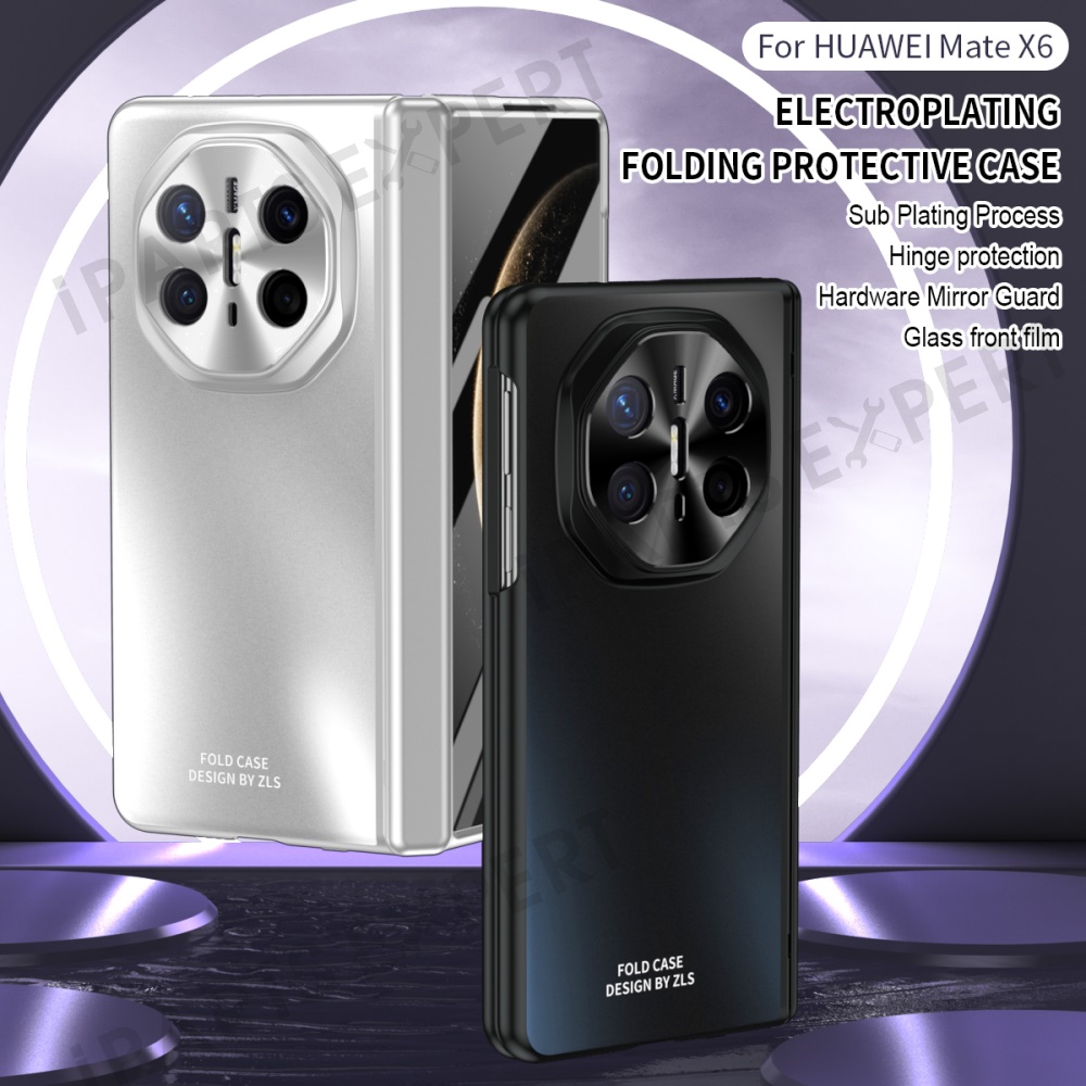 For Huawei Mate X6 Phone Case Hard PC Shockproof Cover with Front Screen Film - Gold