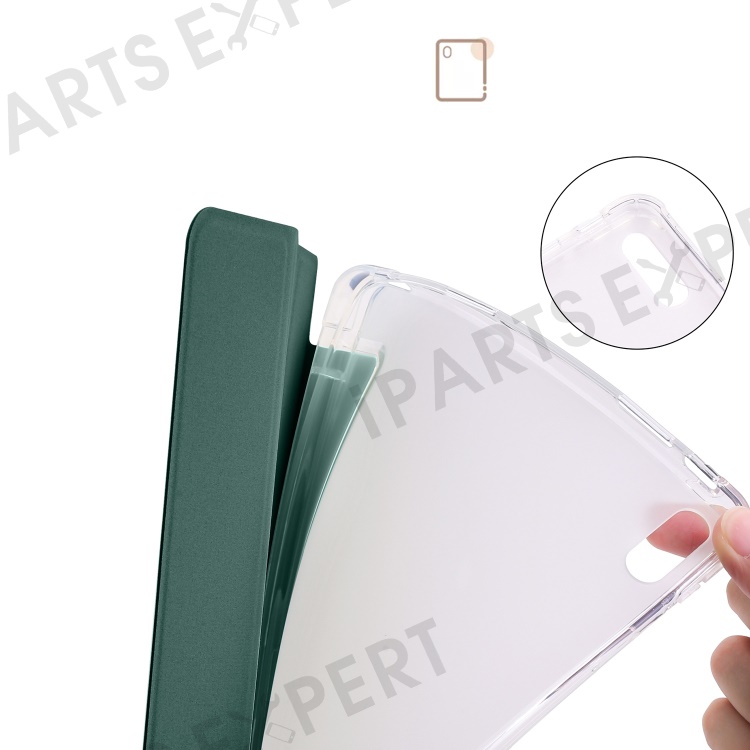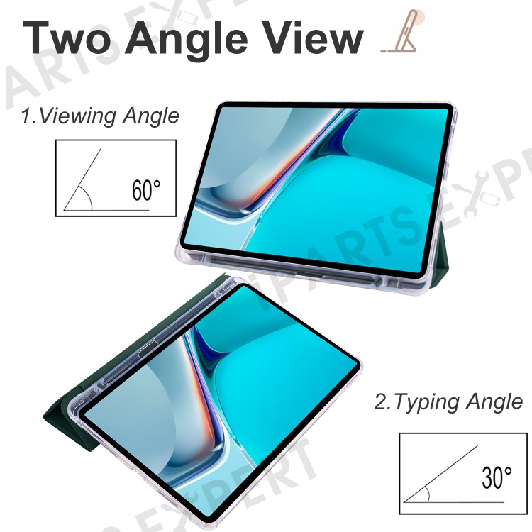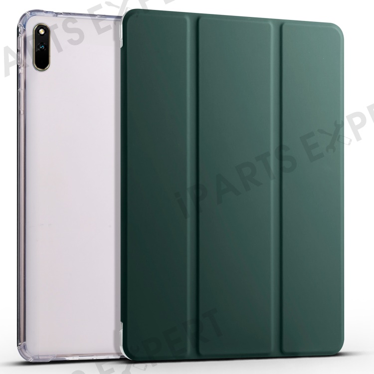 For Huawei MatePad 11 (2021) PU Leather Tri-Fold Stand Folio Shockproof Case Auto Sleep / Wake Smart Tablet Cover with Pencil Holder - Midnight Green