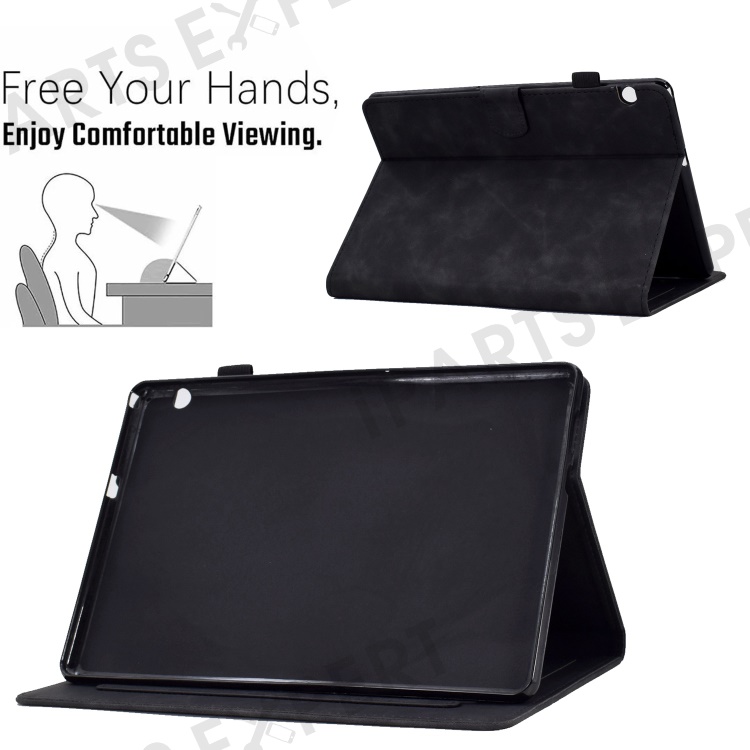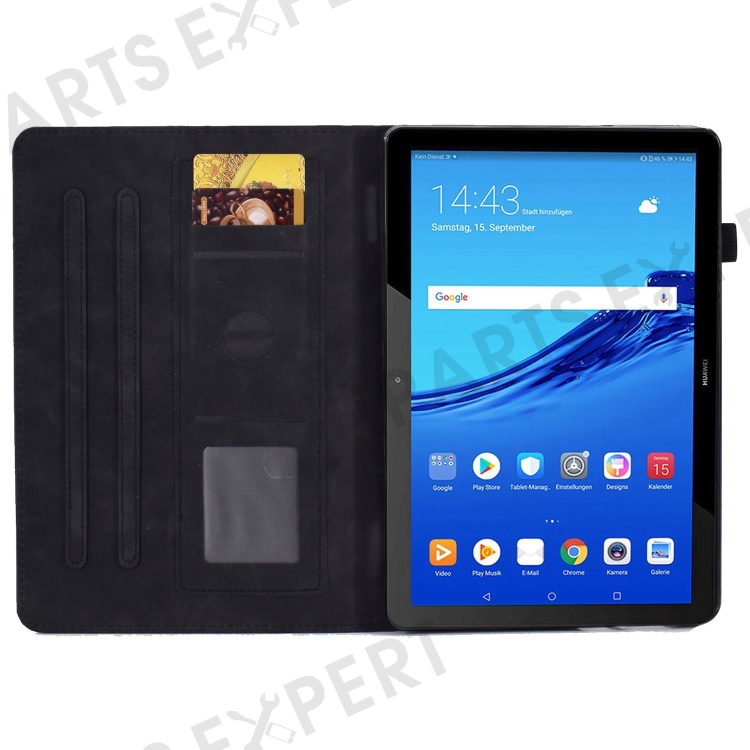 For Huawei MediaPad T5 10.1 Pattern Imprinted Smart Tablet Case PU Leather Card Slots Folio Stand Cover with Pencil Holder - Black