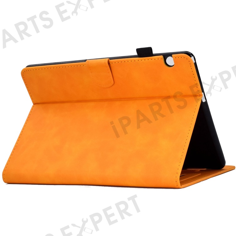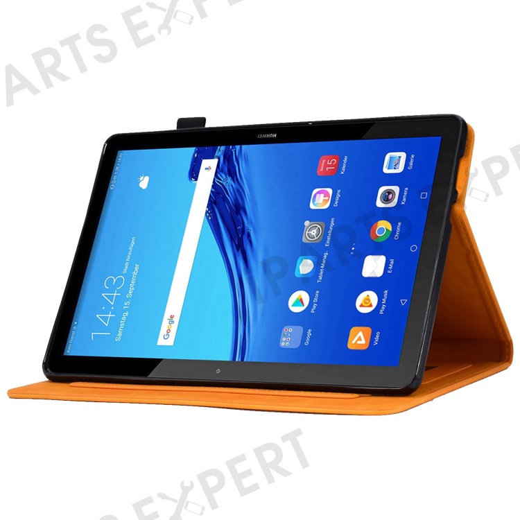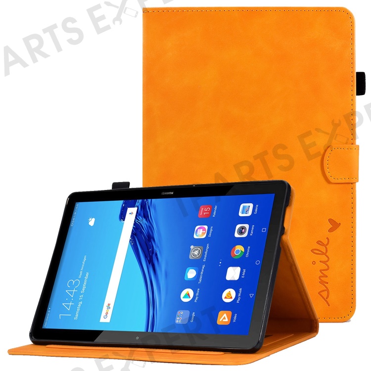 For Huawei MediaPad T5 10.1 Pattern Imprinted Smart Tablet Case PU Leather Card Slots Folio Stand Cover with Pencil Holder - Orange