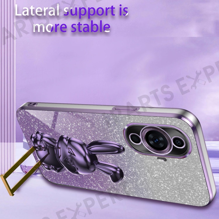 For Huawei nova 11 / nova 12s 4G / nova 12 Lite 4G Cartoon Rabbit Kickstand Cover Glitter Phone Back Case - Purple