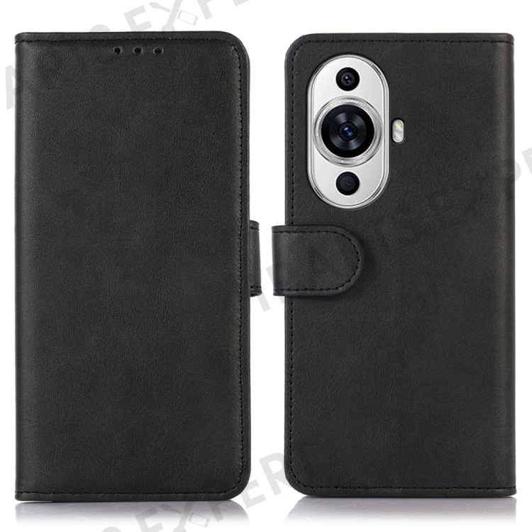 For Huawei nova 11 Pro / nova 11 Ultra Cowhide Texture Phone Wallet Case PU Leather Phone Stand Cover - Black