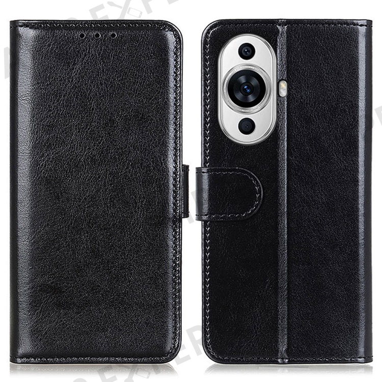 For Huawei nova 11 Pro / nova 11 Ultra PU Leather Wallet Phone Cover Crazy Horse Texture Stand Case - Black