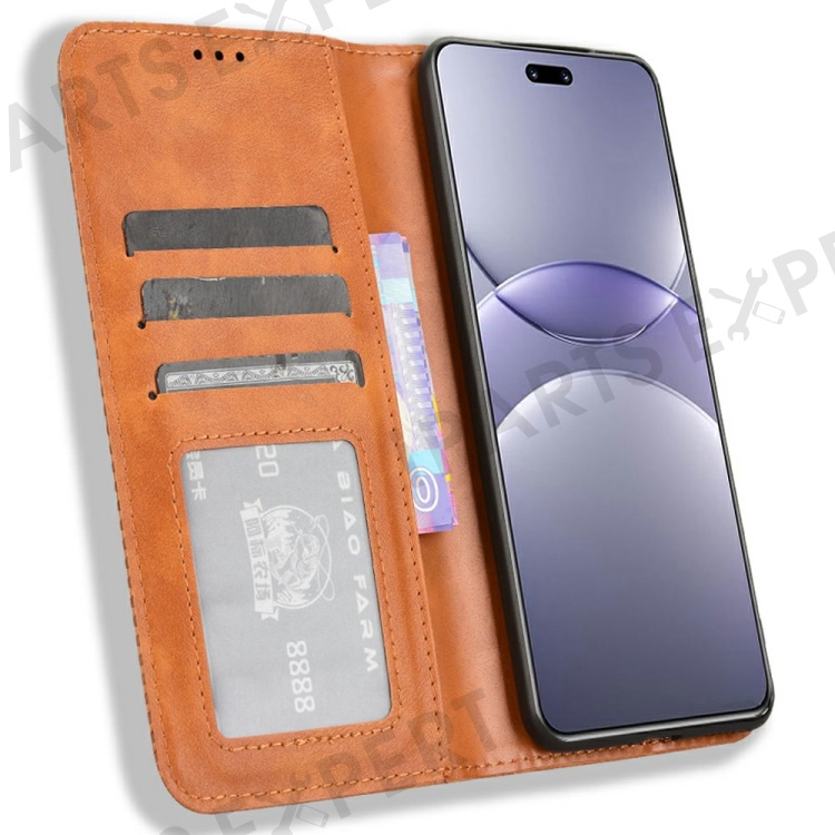 For Huawei nova 13 Pro 5G Leather Case Wallet Stand Retro Texture Phone Cover - Brown
