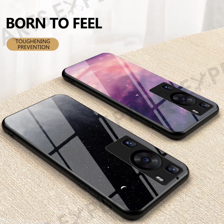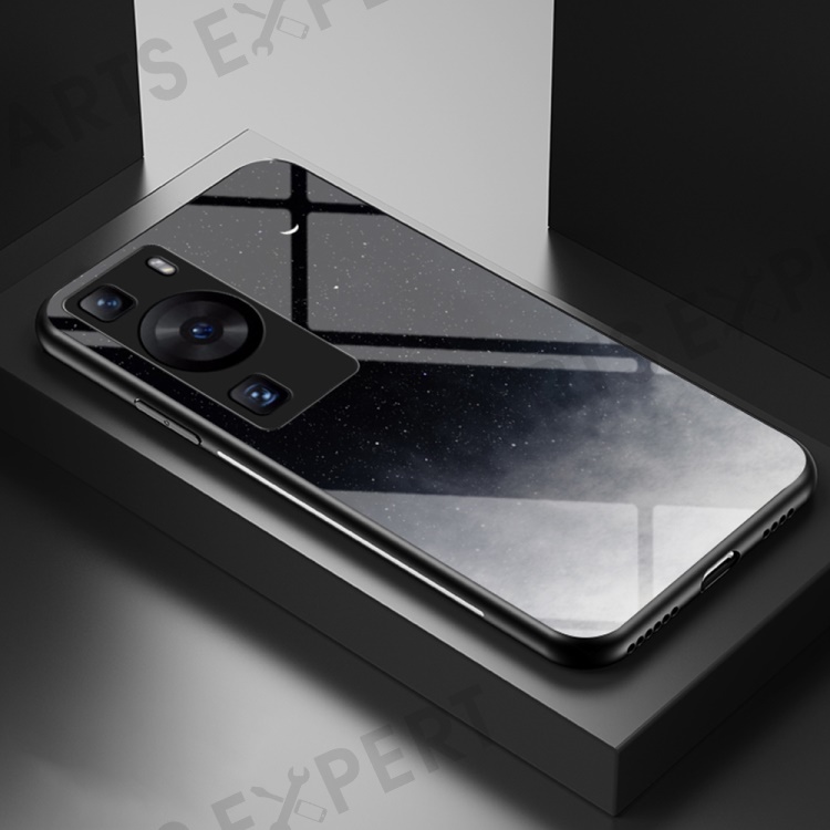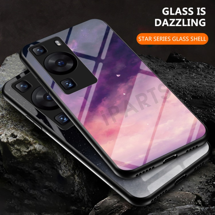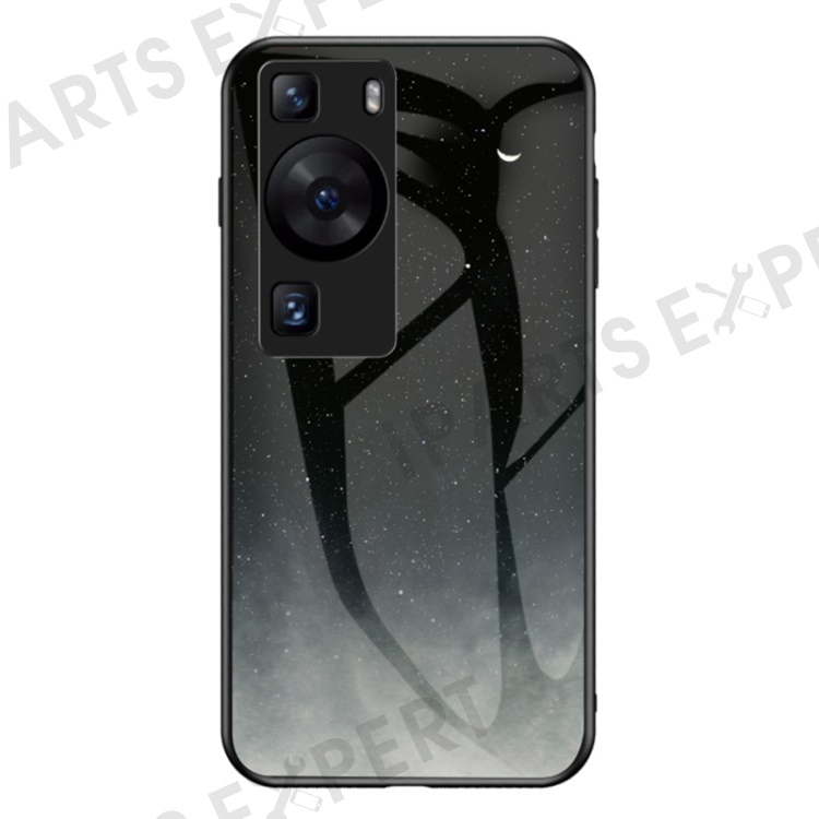 For Huawei P60 / P60 Pro 5G PC+TPU+Tempered Glass Starry Sky Pattern Phone Case Drop-proof Cover - Starry Crescent Moon