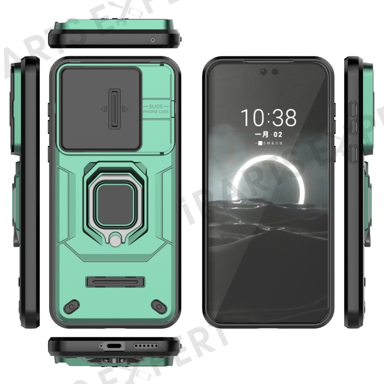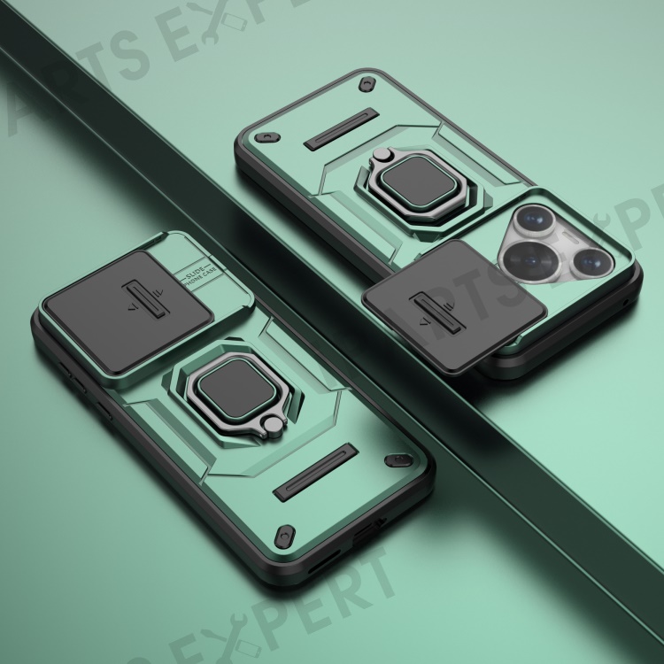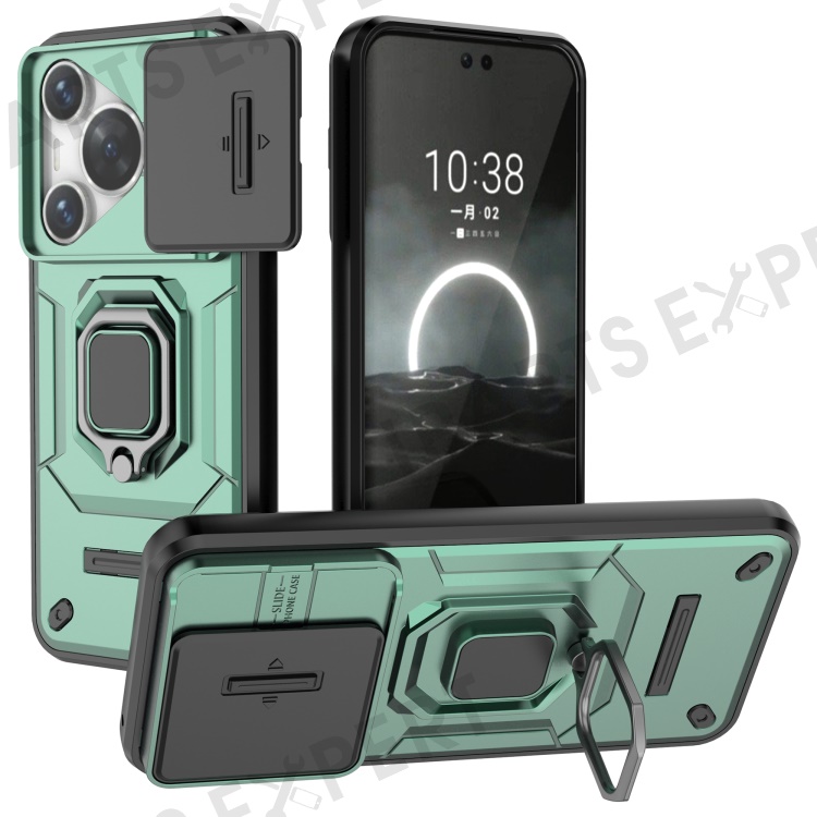 For Huawei Pura 70 Case PC+TPU Protective Phone Shell with Slide Lens Cover - Green