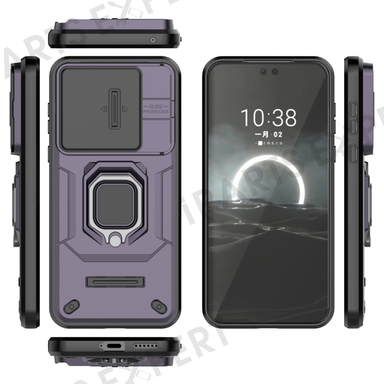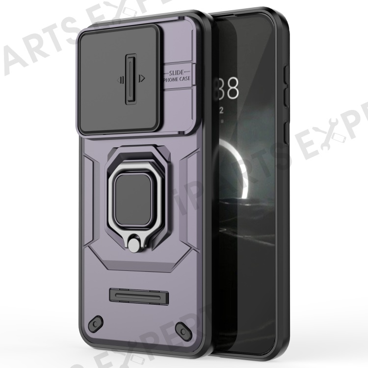For Huawei Pura 70 Case PC+TPU Protective Phone Shell with Slide Lens Cover - Purple