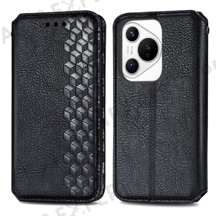 For Huawei Pura 70 PU Leather Case Rhombus Imprint Wallet Stand Phone Cover - Black