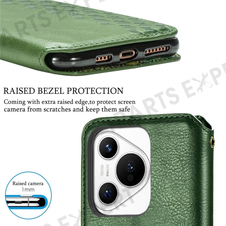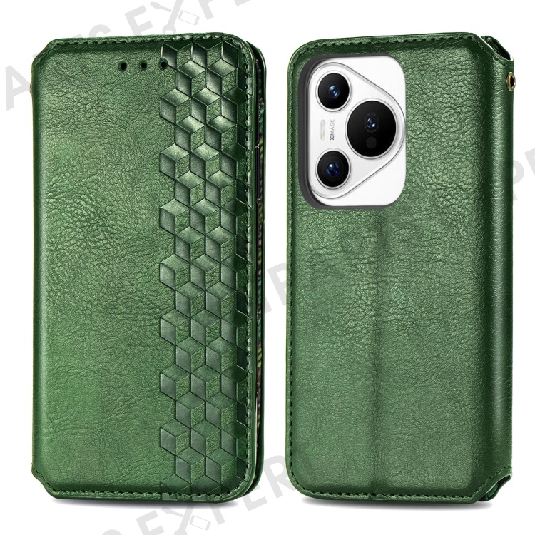 For Huawei Pura 70 PU Leather Case Rhombus Imprint Wallet Stand Phone Cover - Green