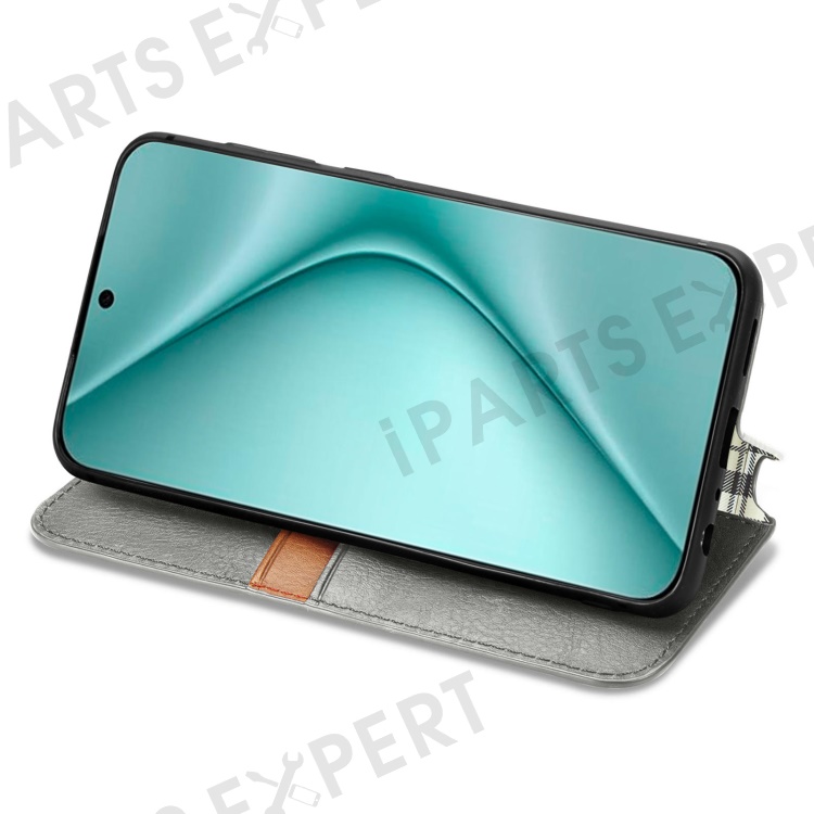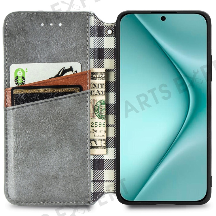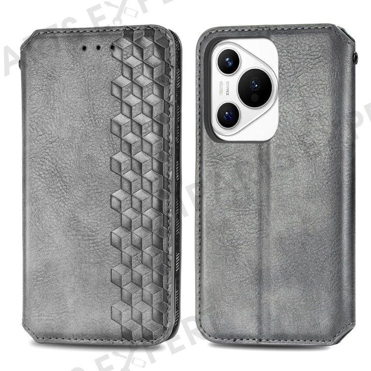 For Huawei Pura 70 PU Leather Case Rhombus Imprint Wallet Stand Phone Cover - Grey