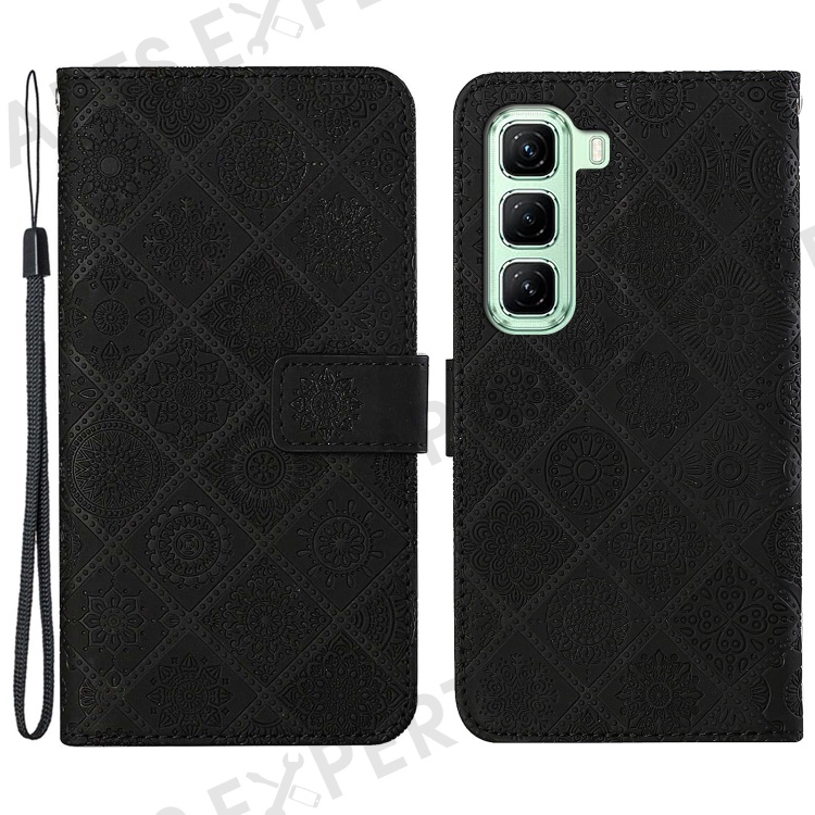 For Infinix Hot 50 4G Case Leather Case Ethnic Style Wallet Phone Cover with Strap - Black