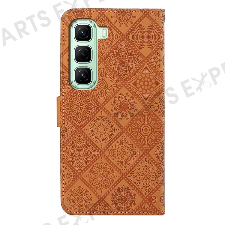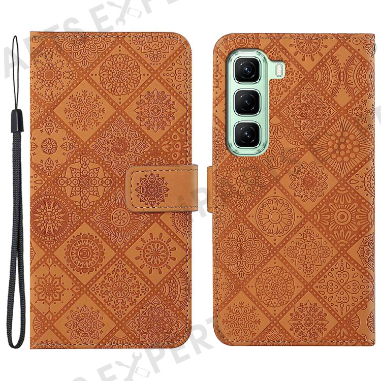 For Infinix Hot 50 4G Case Leather Case Ethnic Style Wallet Phone Cover with Strap - Brown