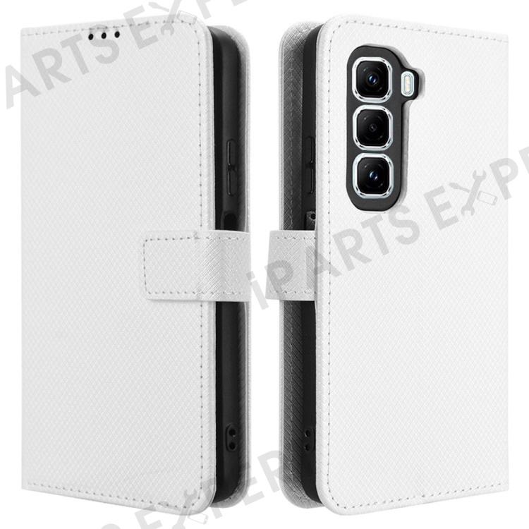 For Infinix Hot 50 Pro+ 4G X6880 Case PU Leather Diamond Texture Wallet Phone Cover - White