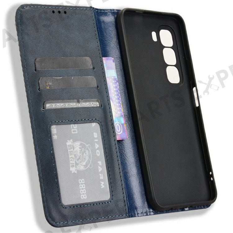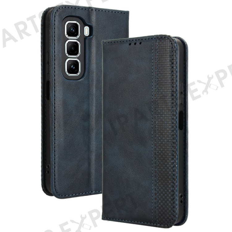 For Infinix Hot 50 Pro+ 4G X6880 Leather Case Wallet Stand Retro Texture Phone Cover - Blue