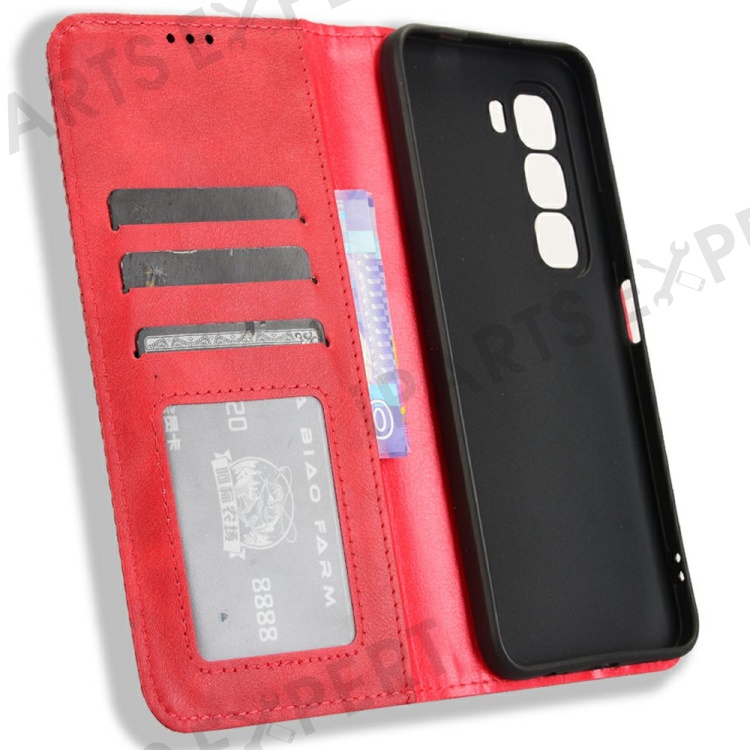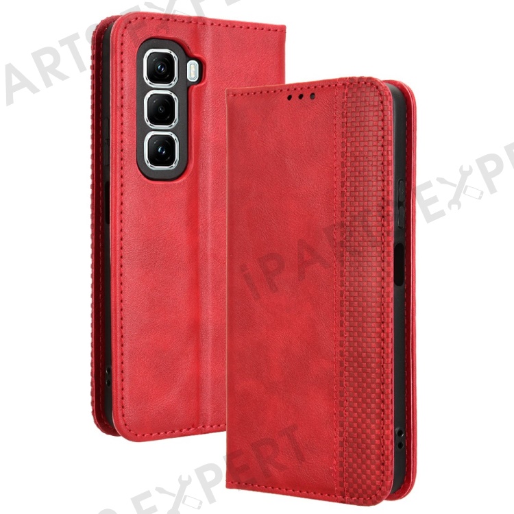 For Infinix Hot 50 Pro+ 4G X6880 Leather Case Wallet Stand Retro Texture Phone Cover - Red
