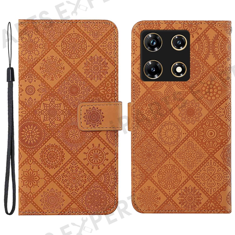 For Infinix Note 30 Pro 4G Case Leather Case Ethnic Style Wallet Phone Cover with Strap - Brown