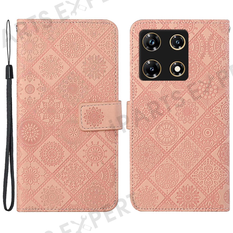 For Infinix Note 30 Pro 4G Case Leather Case Ethnic Style Wallet Phone Cover with Strap - Pink