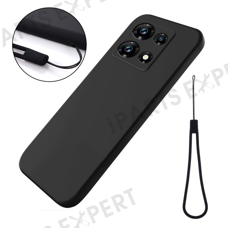For Infinix Note 30 Pro 4G Soft Lining Phone Case Liquid Silicone Shockproof Cover with Strap - Black