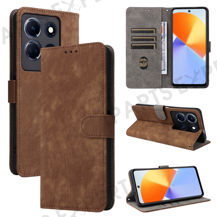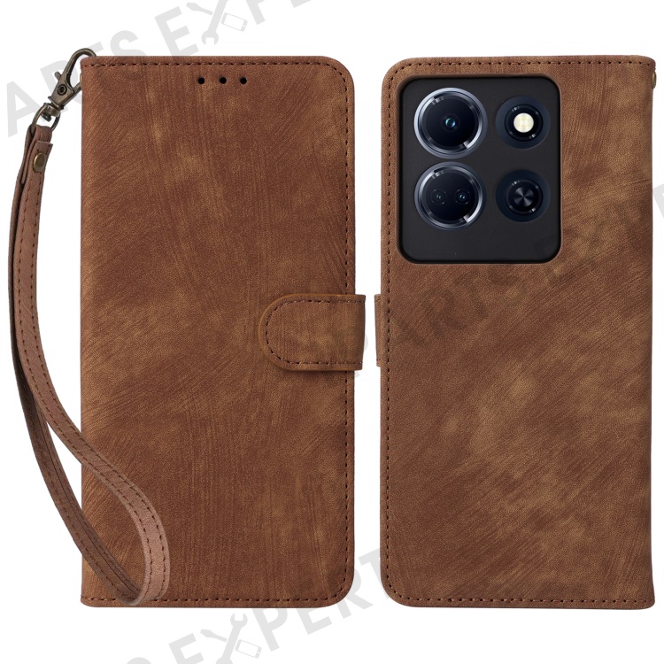 For Infinix Note 30 VIP 5G X6710 RFID Blocking Wallet Phone Cover Leather Stand Case with Strap - Brown
