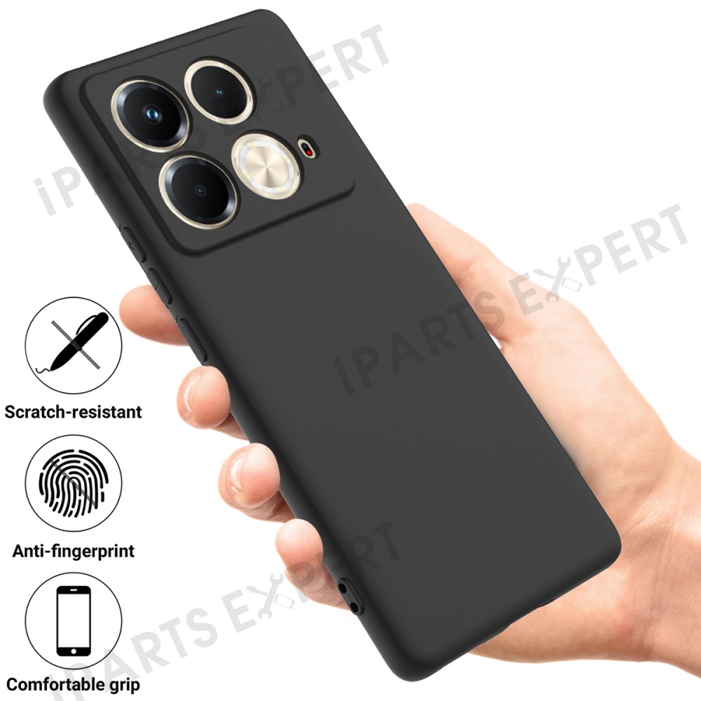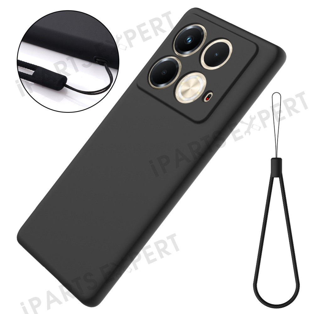 For Infinix Note 40S Case Liquid Silicone Phone Back Cover with Hand Strap - Black