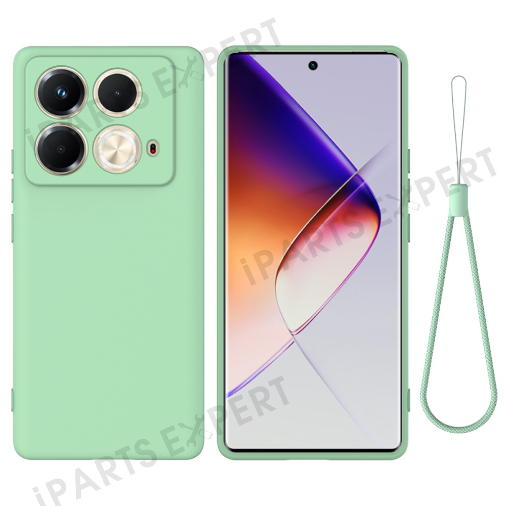 For Infinix Note 40S Case Liquid Silicone Phone Back Cover with Hand Strap - Green