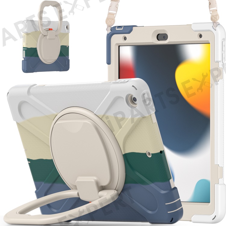 For iPad 10.2 (2021) / (2019) / (2020) Rotary Kickstand Tablet Case PC+Silicone Tablet Cover with Shoulder Strap - Colorful Green