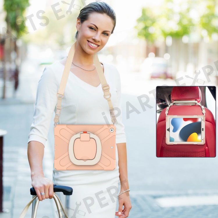 For iPad 10.2 (2021) / (2019) / (2020) Rotary Kickstand Tablet Case PC+Silicone Tablet Cover with Shoulder Strap - Rose Gold