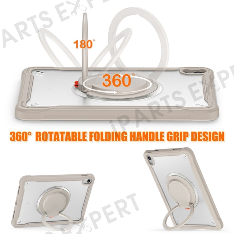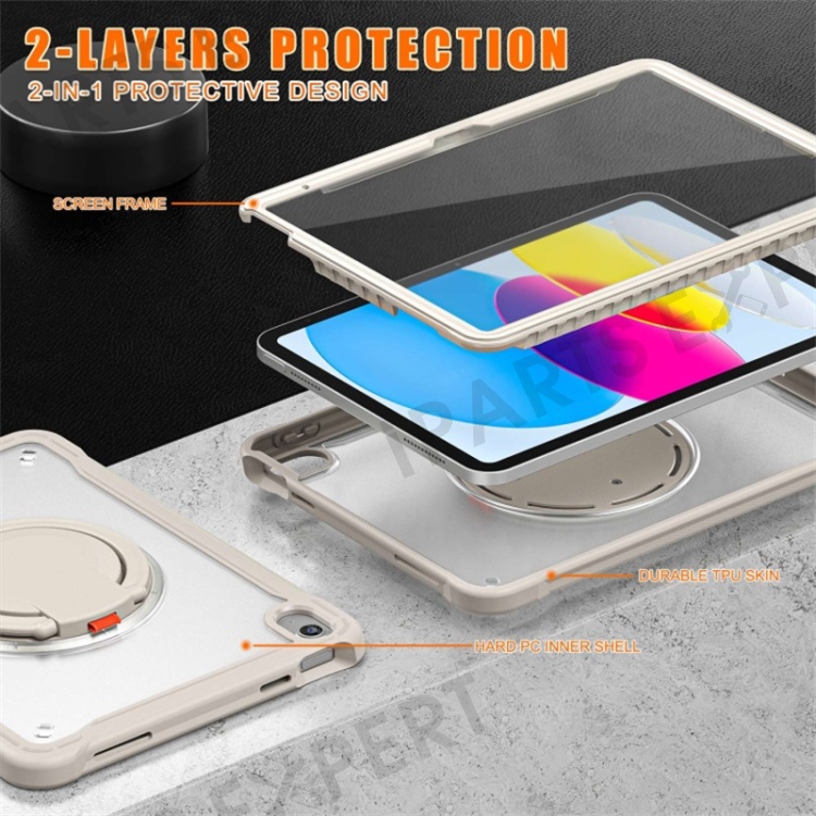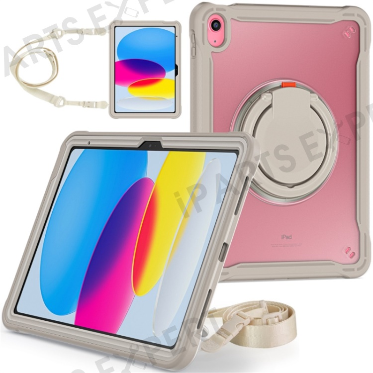 For iPad (2025) / 10.9 (2022) 360-Degree Rotating Kickstand PC+TPU Cover Shockproof Portable Tablet Case with Shoulder Strap - Khaki
