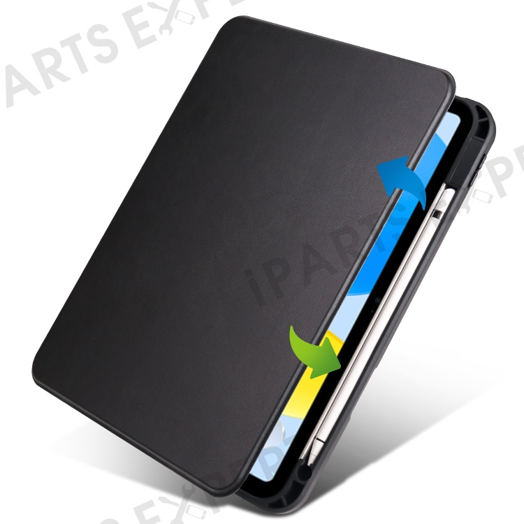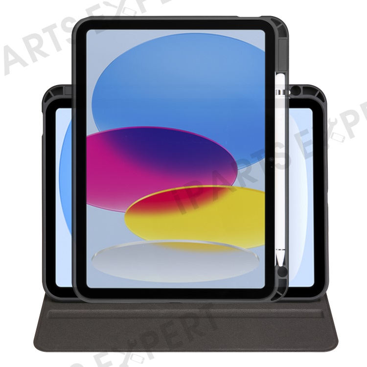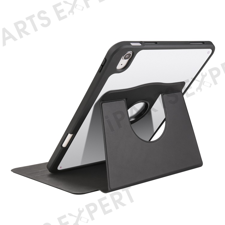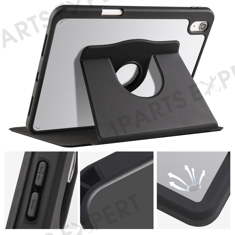 For iPad (2025) / 10.9 (2022) PU Leather + Acrylic Tablet Case Rotary Kickstand Cover with Pen Holder - Black