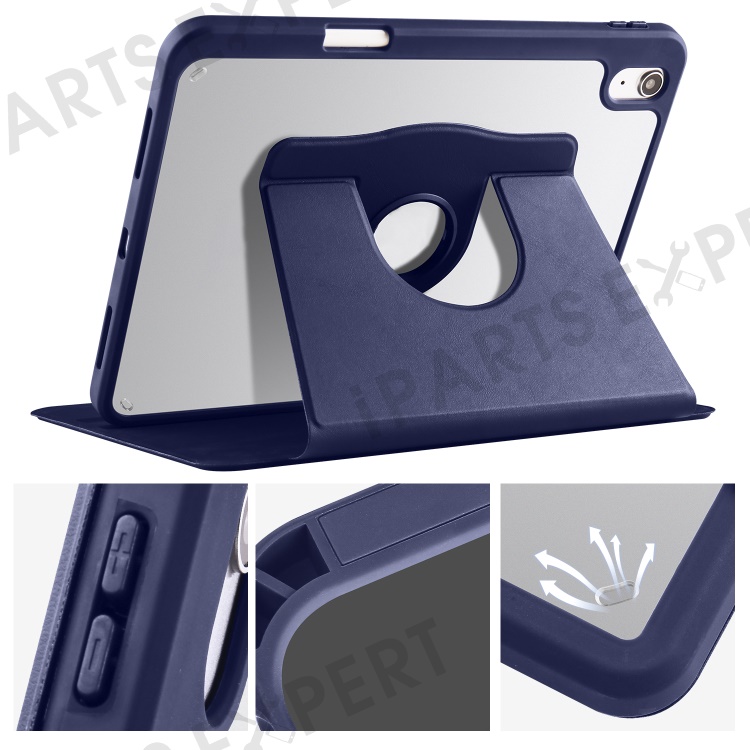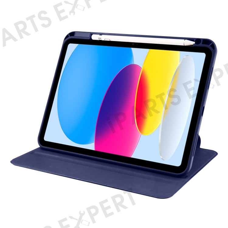 For iPad (2025) / 10.9 (2022) PU Leather + Acrylic Tablet Case Rotary Kickstand Cover with Pen Holder - Dark Blue