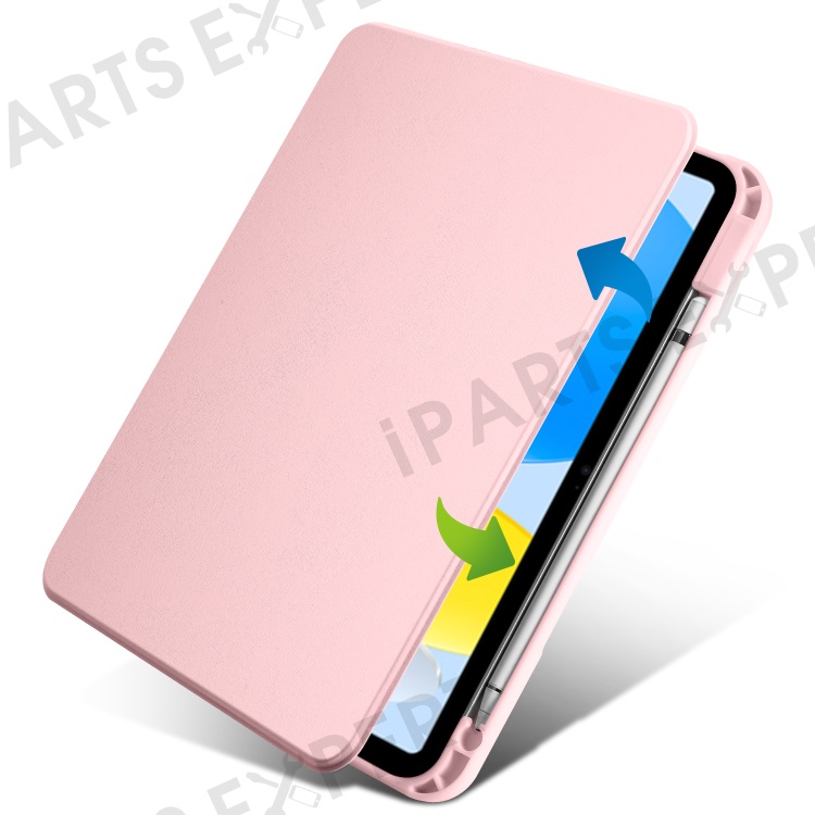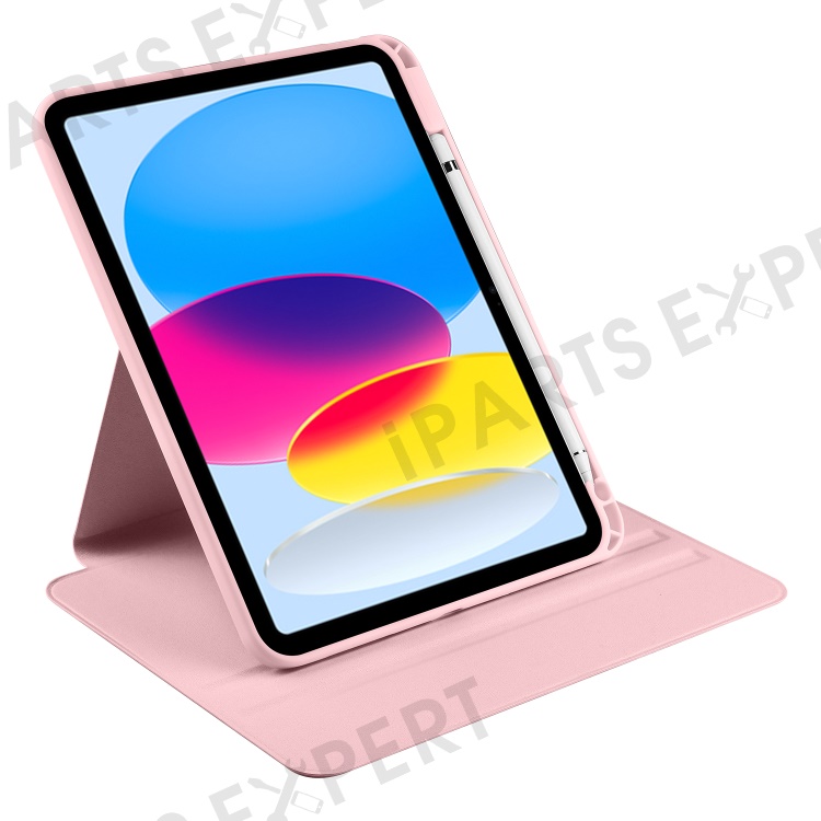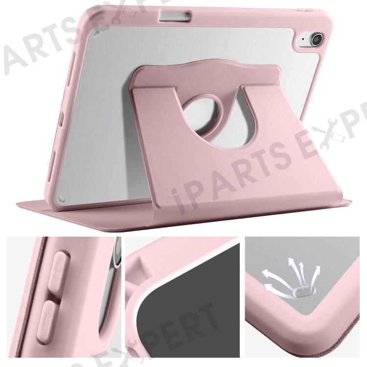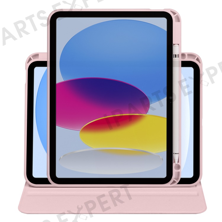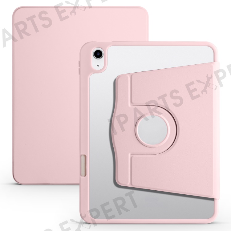 For iPad (2025) / 10.9 (2022) PU Leather + Acrylic Tablet Case Rotary Kickstand Cover with Pen Holder - Pink