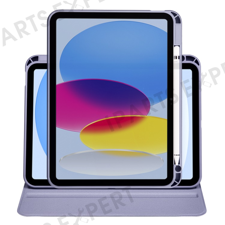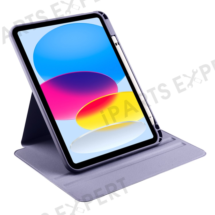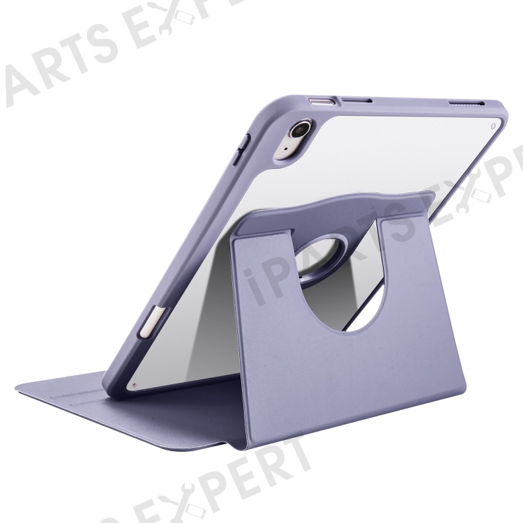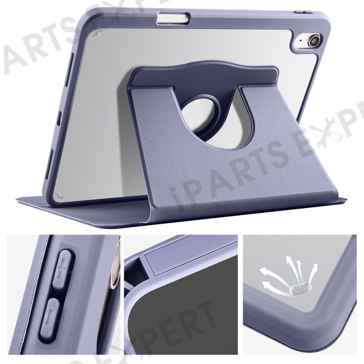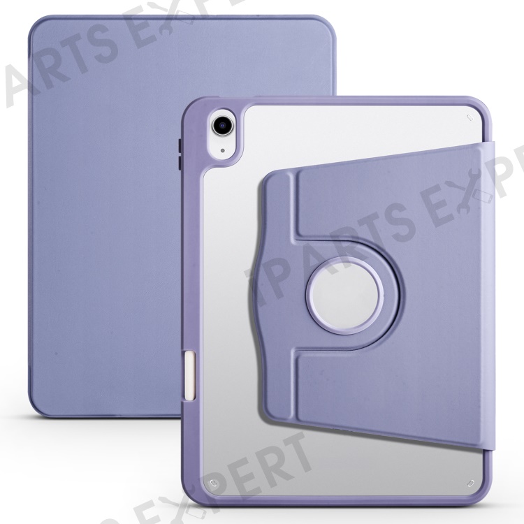 For iPad (2025) / 10.9 (2022) PU Leather + Acrylic Tablet Case Rotary Kickstand Cover with Pen Holder - Purple