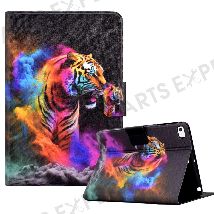 For iPad Air (2013) / Air 2 / iPad 9.7-inch (2017) / (2018) Case Pattern Printed Leather Flip Cover Anti-Drop Tablet Shell - Colorful Tiger
