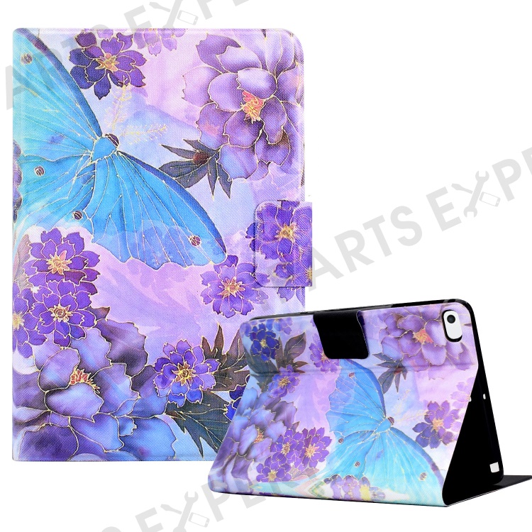 For iPad Air (2013) / Air 2 / iPad 9.7-inch (2017) / (2018) Case Pattern Printed Leather Flip Cover Anti-Drop Tablet Shell - Peony Butterfly