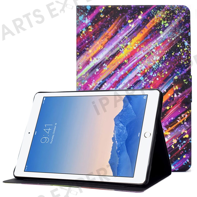 For iPad Air (2013) / Air 2 / iPad 9.7-inch (2017) / (2018) Pattern Printing Tablet Cover PU Leather Stand Card Slots Magnetic Clasp Case - Meteor