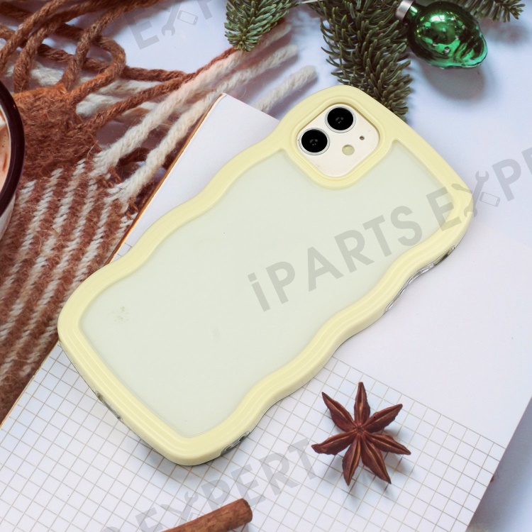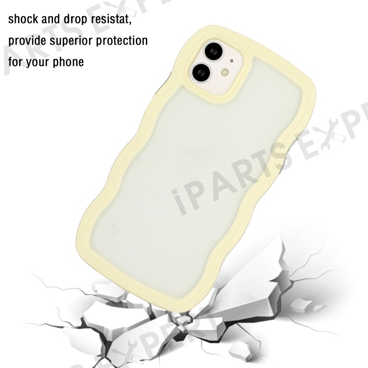 For iPhone 11 6.1 inch Impact Resistant Wavy Edge Color Frame Transparent Back Cover PC + TPU Phone Case - Beige
