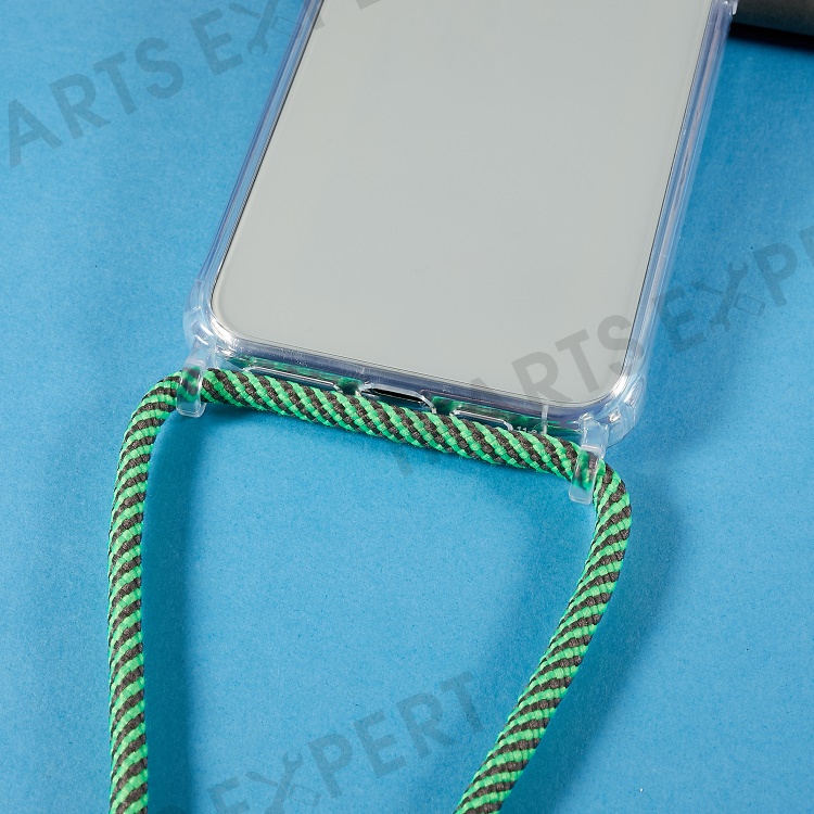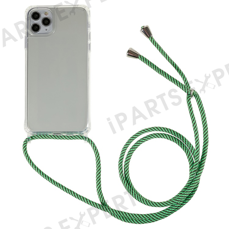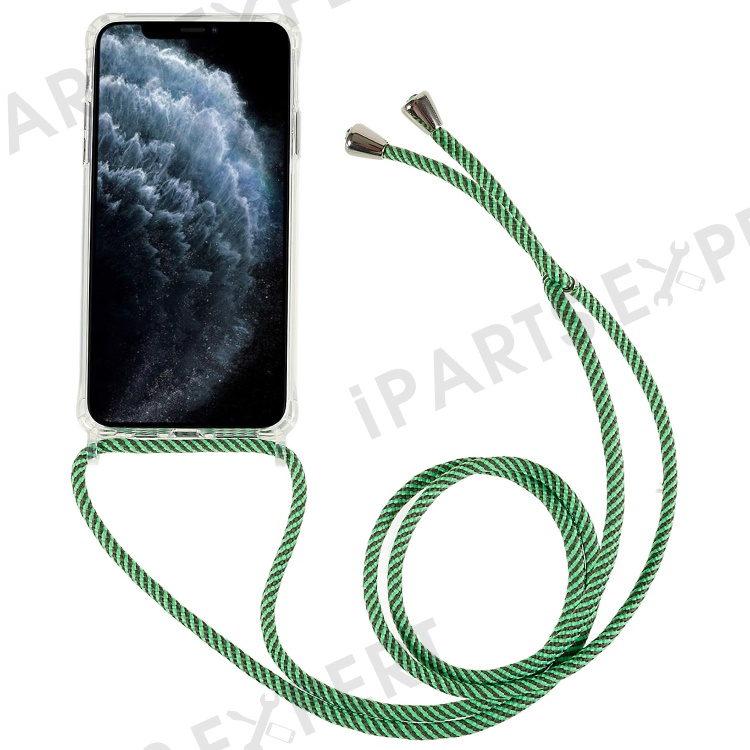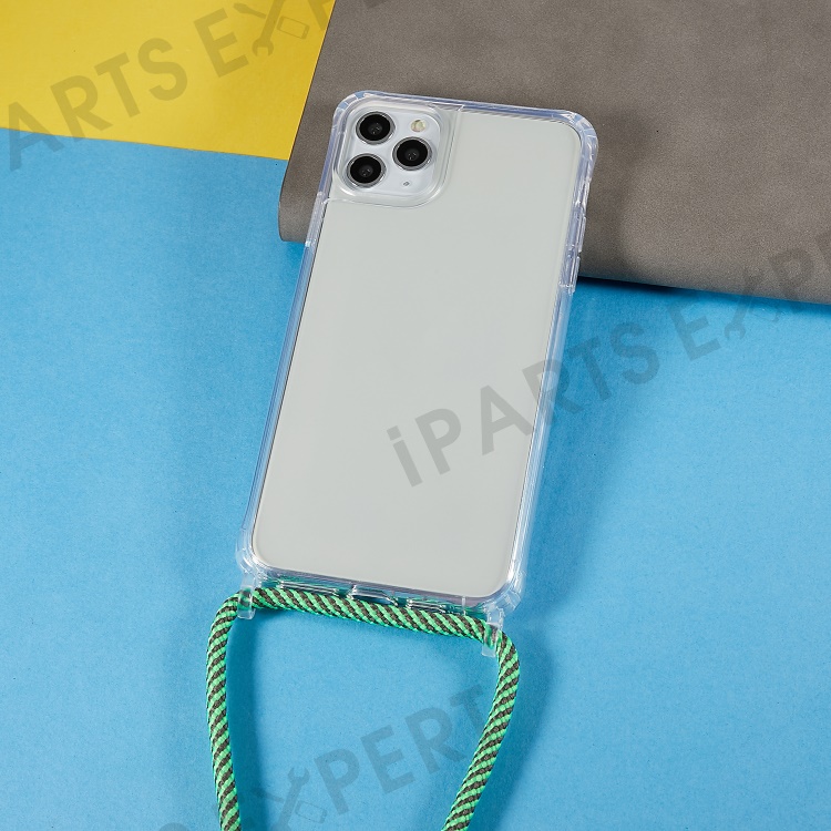 For iPhone 11 Pro Max 6.5 inch TPU+Acrylic Phone Cover Anti-scratch Clear Case with Adjustable Lanyard - Green