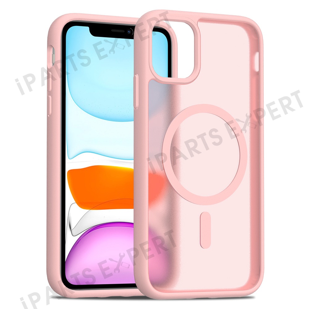 For iPhone 11 / XR Case Compatible with MagSafe TPU Frame Acrylic Back Phone Cover Skin Touch - Pink
