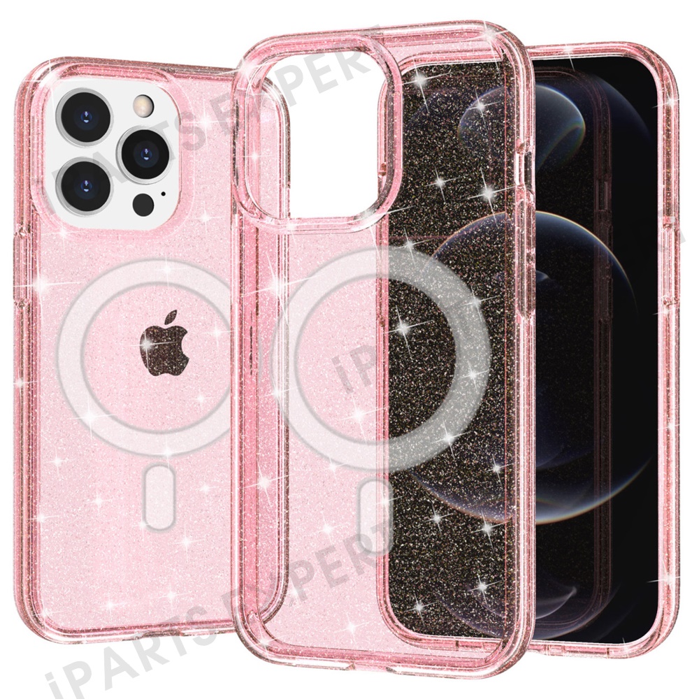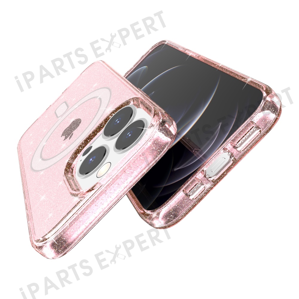 For iPhone 12 Pro / 12 Case Compatible with MagSafe Glitter Powder PC + TPU Phone Cover - Pink